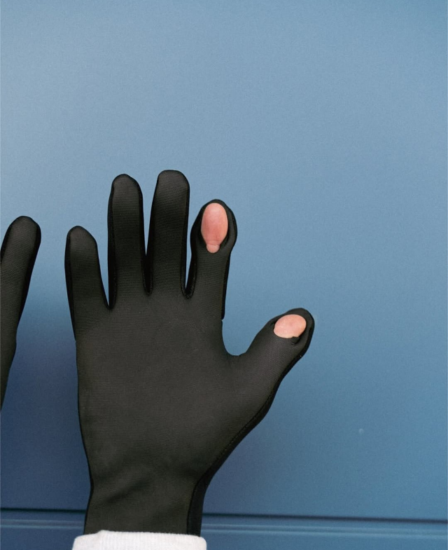 親指・人差し指の先端部には指出し用の縦スリットを搭載。